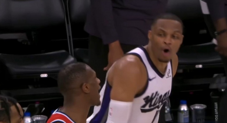 比赛最后时刻,威少与快船后卫克里斯·邓恩爆发口角,威少怒喷道:“你TM就是个无名小卒、无名小卒。你是谁?来试试?你根本不敢。滚回去吧(此时邓恩被换下),你TM在说什么?”